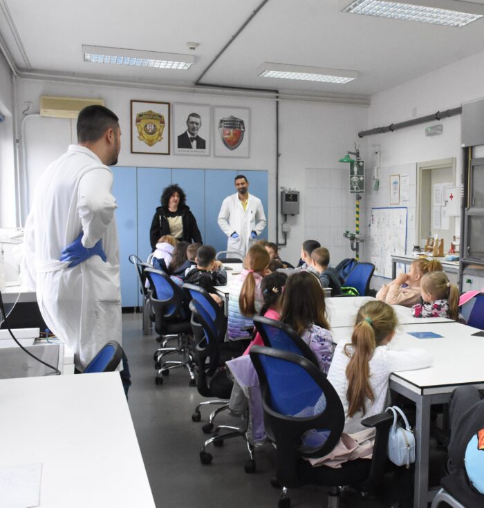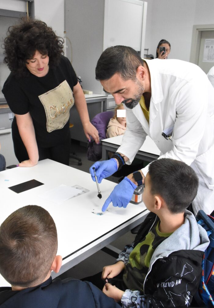 U laboratoriji za forenziku predškolci su saznali kako se na glatkim površinama otkrivaju otisci prstiju i saznali kako se postaje vrhunski profesionalac u policijskom poslu.