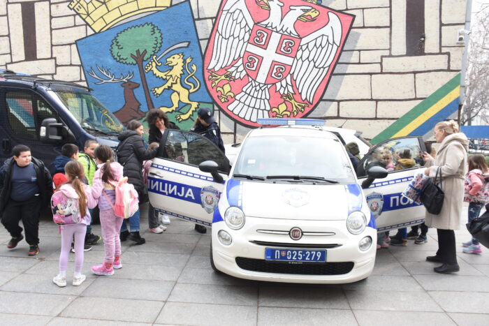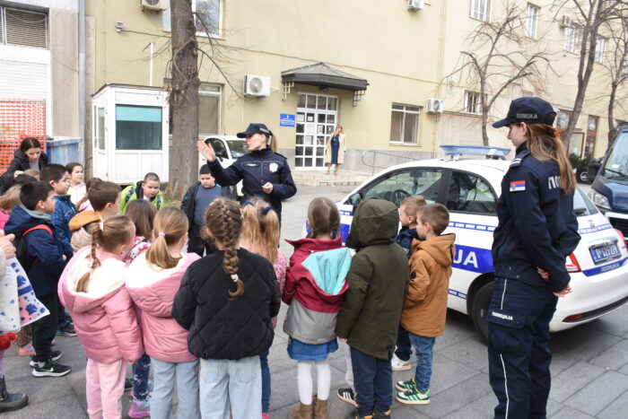 Nije izostala ni poseta Policijskoj stanici Zemun. Tokom druženja sa policajcima naučili su na koji način mogu da potraže pomoć policije, a zatim su se fotografisali u policijskom vozilu.