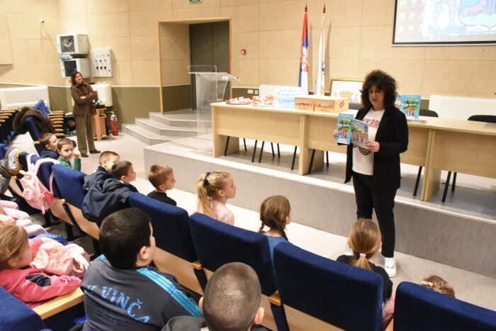 U velikoj opštinskoj sali su saznali šta simboliše zemunski grb, koliko je zaista bogata istorija Zemuna i koja je uloga opštine u funkcionisanju lokalne samouprave. Mališani su pogledali ekološki edukativni film, a zatim su ih načelnica Uprave Gradske opštine Zemun Tijani Bakić i zamenica glavnog i odgovornog urednika Zemunskih novina i koordinatorka projekta Simona Janjoš darovale tradicionalnim poklon-paketima ”Malac u lokalnoj zajednici”, kao i knjižicom ”Pažljivkova pravila u saobraćaju”.
