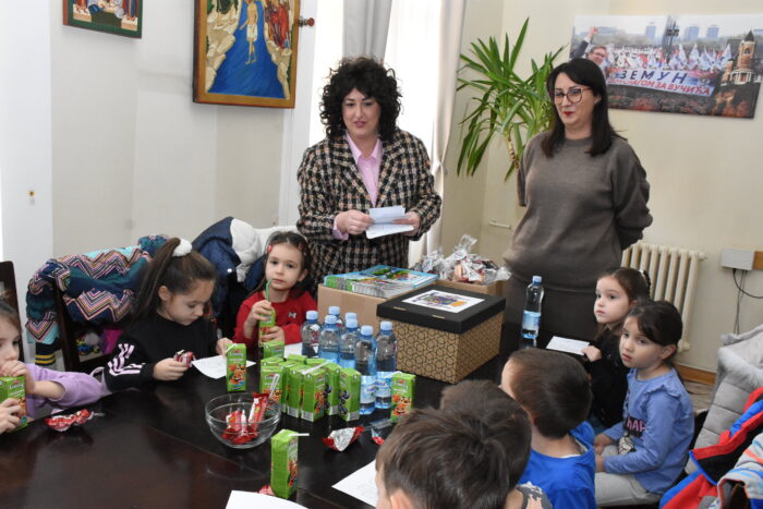 Малишани су председницу Скупштине Андријану Кукољ даривали са колажом ликовних радова који су њихових руку дело, а домаћини су, како то већ ред налаже, узвратили традиционалним поклон-пакетима. Током боравка у кабинету председника Општине Земун предшколци су питали општинско руководство све што их је интересовало, а имали су прилику да од председника Савета за безбедност саобраћаја на путевима ГО Земун и члана општинског Већа Саве Мишковића науче нешто више о правилима у саобраћају.