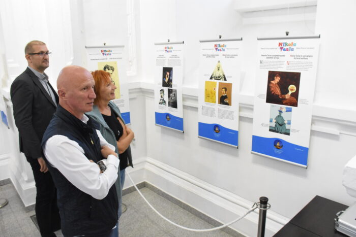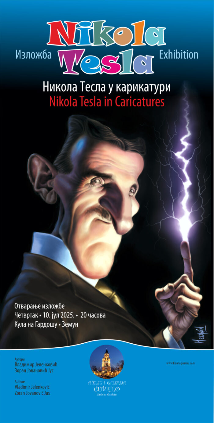 Oвогодишњу изложбу ”Никола Тесла у карикатури” у кули Гардош свечано су отворили њени аутори Владимир Јеленковић и Зоран Јовановић Јус.