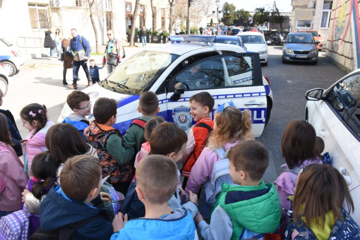 Након боравка у општини, предшколци су посетили Полицијску станицу Земун. Током разговора са полицајцима, научили су како и у којим ситуацијама могу да затраже помоћ. Посебно одушевљење изазвала је презентација полицијских возила. Радознала да виде шта се дешава  занимљивом дружењу придружила су се и деца која су се у том тренутку нашла у непосредној близини.