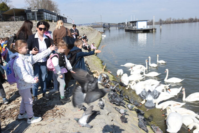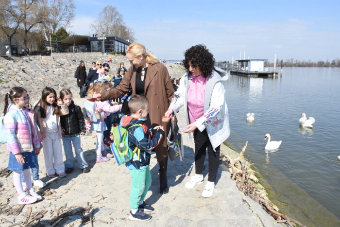 Следећа станица био је Земунски кеј, где су малишани хранили лабудове и голубове. Уз стручно вођење упознали су се са животињским светом Дунава и значајем очувања природе.